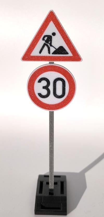 Schild Achtung Baustelle + 30kmh
