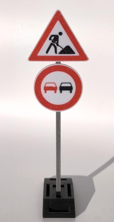 1x Schild Achtung Baustelle + Überholverbot